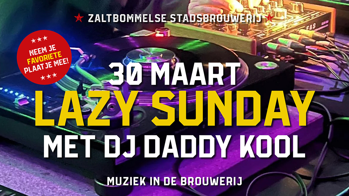 Zondag 30 maart maken we weer tijd voor een Lazy Sunday Afternoon. Een lekkere ontspannen zondagmiddag met heerlijke bieren op de tap. DJ Daddy Kool verzorgt met zijn vinylcollectie voor de ‘lazy’ muziek. Heb jij vinyl dat je graag wil horen deze middag? Neem jouw favoriete plaatje mee en wij leggen hem op de draaitafel!